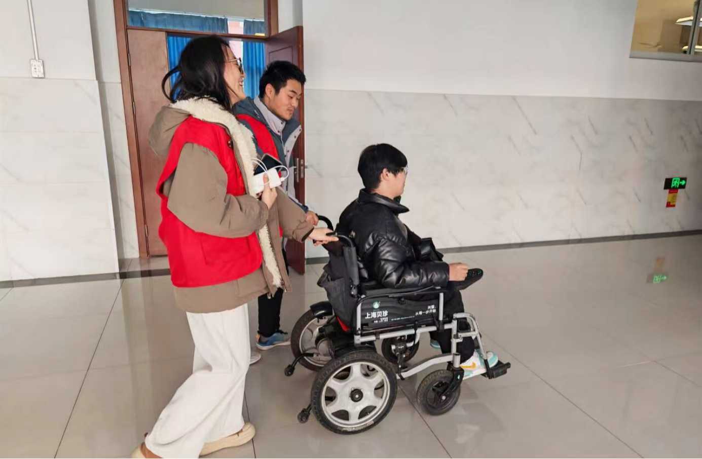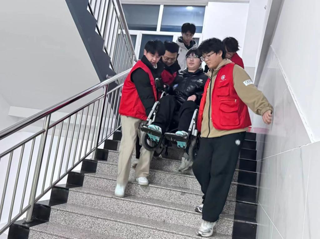 书院组建“一对一”志愿者陪护小队,每日负责接送特殊需求学生上下课、协助就餐取物等日常事务。从每日上下课的接送陪护,到心理情绪的倾听疏导,帮扶计划构建起“生活+心理”的全维度支持网络,以“定期轮班+定点对接”的模式,筑牢校园出行的“暖心防线”,从教室到走廊、从楼梯口到无障碍通道,全程陪同让学生出行无忧。