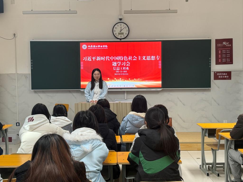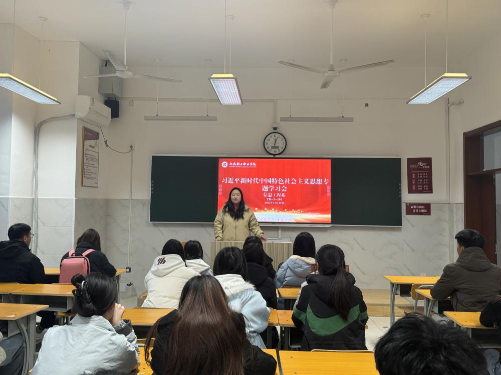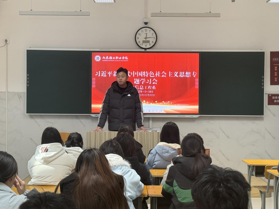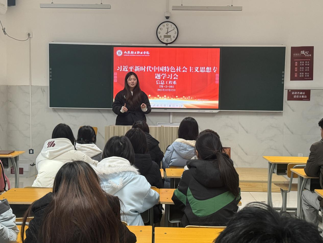 2025年12月10日,信息工程系轻青社分社于3教104成功举办习近平新时代中国特色社会主义思想专题学习会。活动特邀党员教师吕鸽、孙志成到场指导,围绕“深化理论武装、践行健康理念、强化青年担当”三大板块,通过理论解读、实践分享与互动研讨,引导青年学生系统学习党的创新理论。
