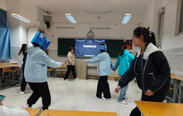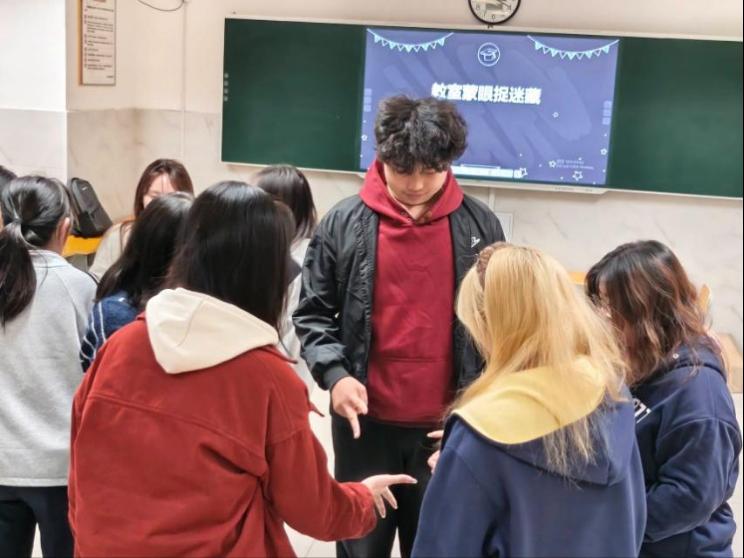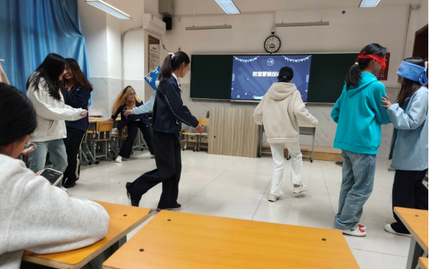 活动现场氛围热烈沸腾,熟悉的课桌间化身欢乐竞技场。蒙眼的同学循着同伴提示谨慎探索,指尖划过桌椅满是紧张期待;躲藏的同学脑洞大开,或蜷于讲台后、或藏于储物柜旁,以巧妙走位躲避搜寻。奔跑声、笑声、呼喊声交织回荡,满溢的青春活力浸染校园。这场趣味比拼不仅锻炼了身体协调与空间感知能力,更在协作互动中拉近距离,让陌生同窗结缘、挚友情谊升温。