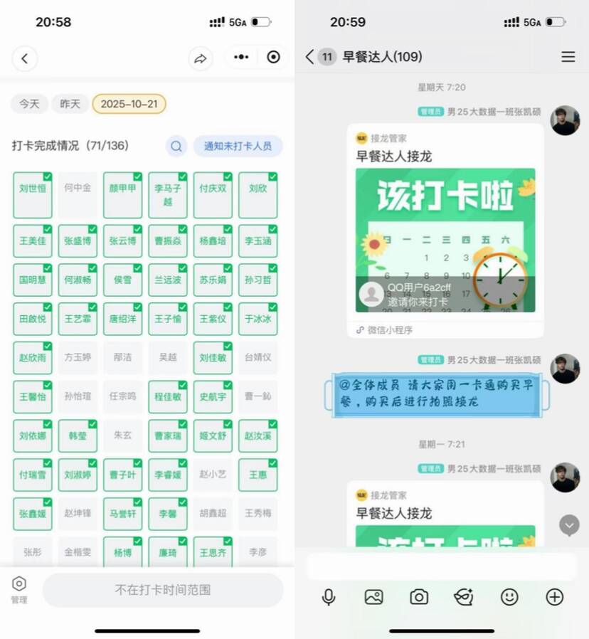 活动以每日打卡为核心践行形式:组织者通过线上平台发起早餐打卡任务,学子需上传就餐截图与自拍照记录每日早餐情况。这种自主参与式打卡不仅有效督促大家告别“赖床缺早餐”的陋习,更在学子间形成互相监督、彼此激励的良好氛围。不少参与者反馈,坚持打卡后,上午学习时的精神状态与专注度显著提升。